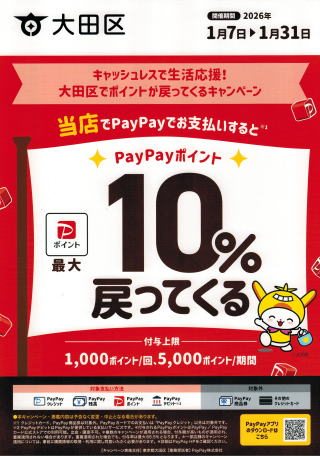 PayPayでお支払いすると10%戻ってくる!!